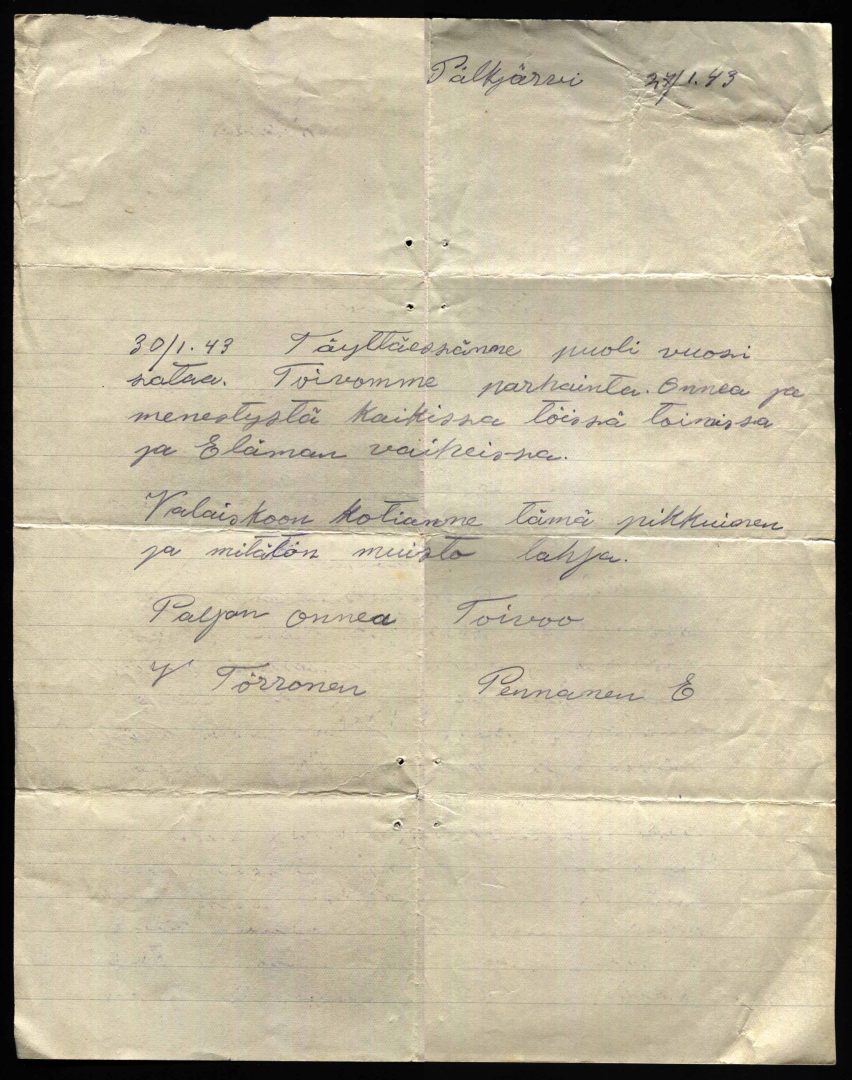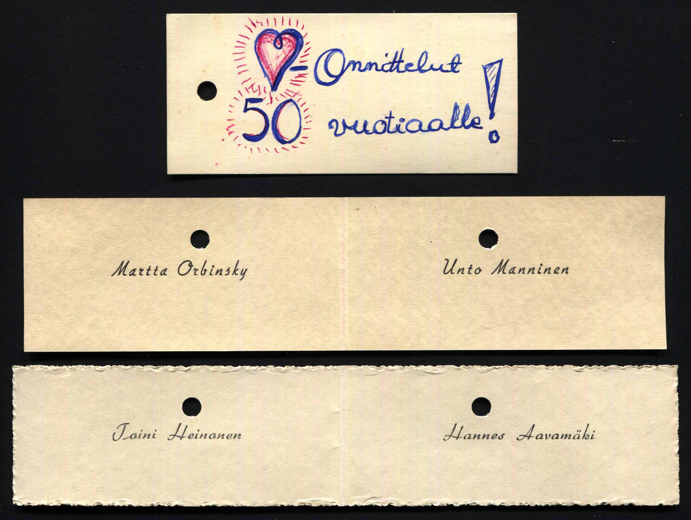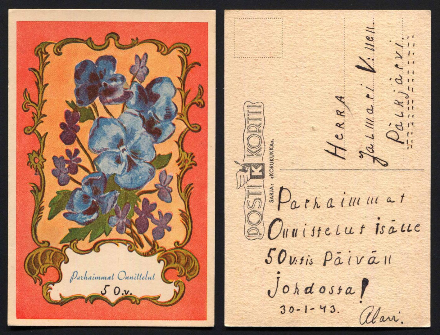 Juhlista ei ole valokuviakaan, ja sen vuoksi kuvituksena on pälkjärveläisten lähettämiä onnittelukortteja.