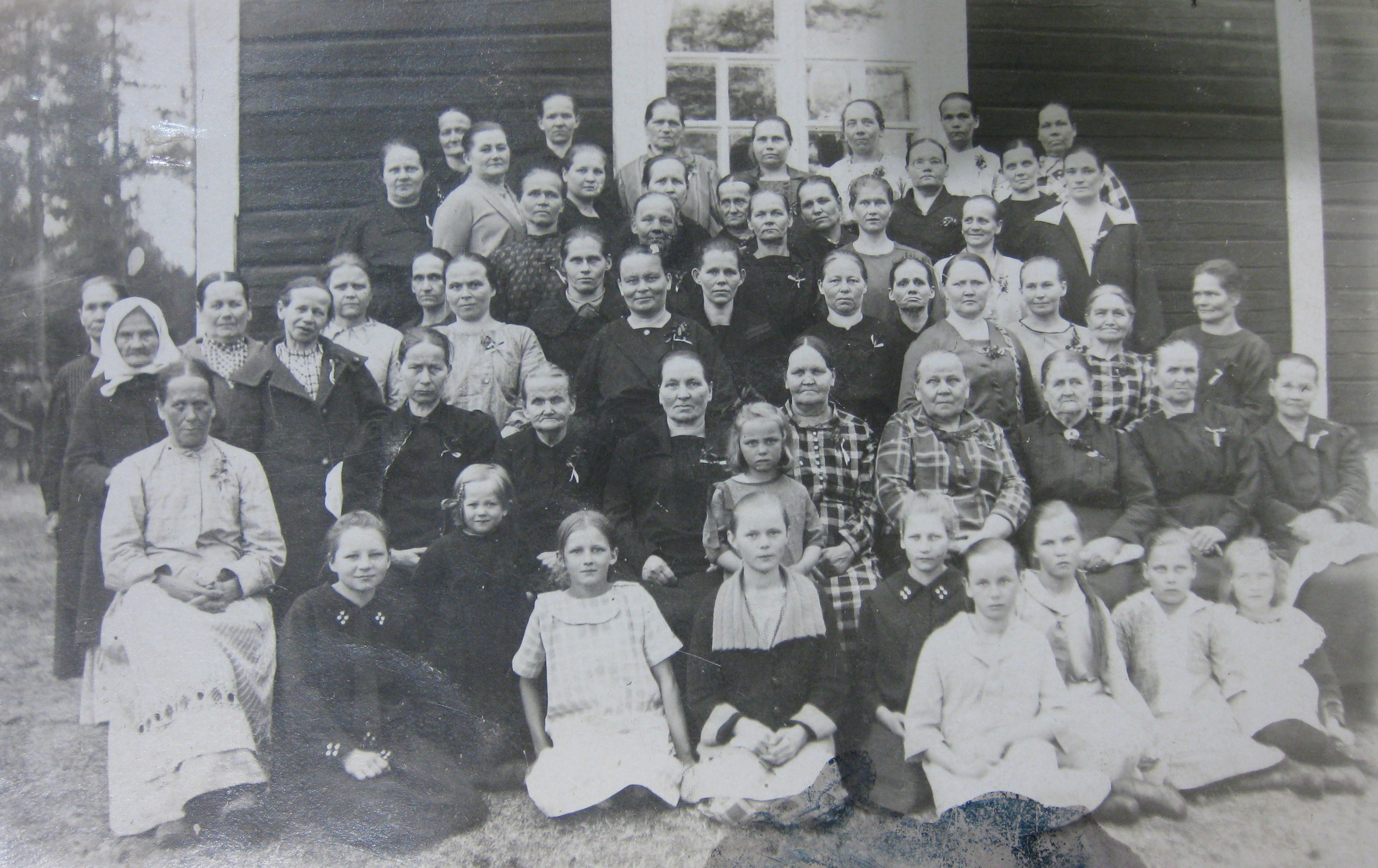 Äitienpäivät 1929. Takana vas. vaaleassa mekossa Lyyli Kivinen ja hänen vieressään Ester Nieminen. Takan oik. toisees rivissä Anni Kilpiranta ja Anni Siimes.Edestä katsottuna toisessa rivissä neljäs oikealta Manne Kasurinen. Voisiko kuva olla Iljalan koululta? Kuva Hilkka Heiskasen albumista.
