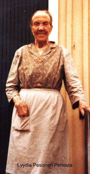Emäntä Lyyti (Lyydia) Pesonen, myöh. Niskanen, s. 12.09.1896 Kirkkolahdessa, asui Pälkjärven Pirhossa ja kuoli 1981 Pyhäselässä.