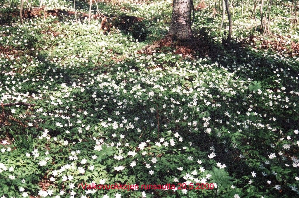 Valkovuokkojen kukinta oli runsasta 20.5.2000. Kuva Unto Kortelainen.