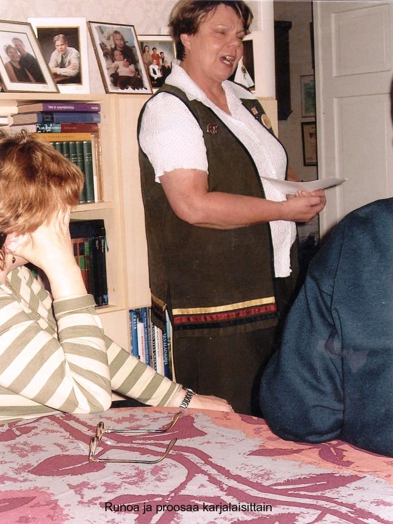 Valtaosa pälkjärveläisistä evakuoitiin Laihialle syyskuussa 1944. Pälkjärven pitäjäseura järjesti 60-vuotismuistelumatkan Laihialle 26 - 27.9.2004. Isäntinä matkalla toimivat Laihian karjalaiset. Yhteisessä illanvietossa saatiin kuulla niin runoa kuin proosaakin. Kuva Unto Kortelaisen albumista.