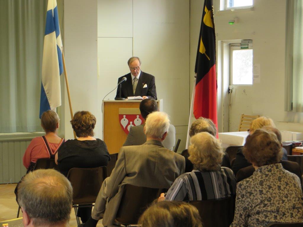 Juhlapuhujana oli Karjalankielen seuran kunniajäsen,everstiluutnantti (evp) Aaro Mensonen. Kuva Lissu Kaivolehto.