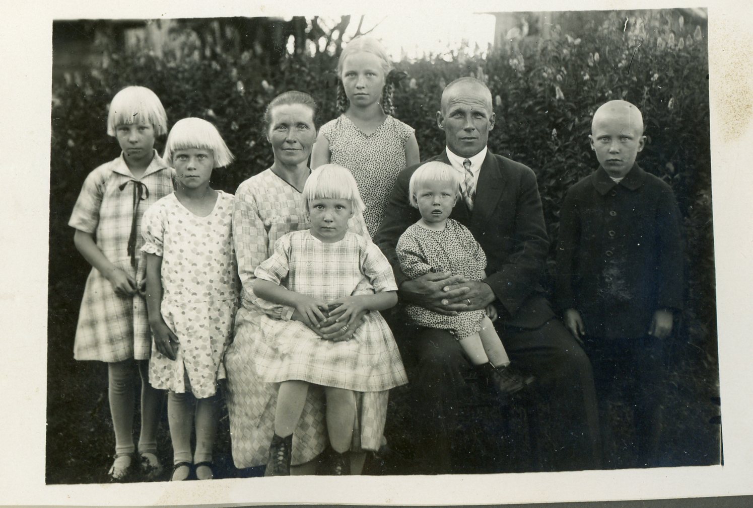 Myös toisaalla sama kuva, jonka tietojen mukaan kuvassa on Jussi Rouhiaisen perhe Hietaniemestä. Kuvattu joko 1929 tai 1930.
