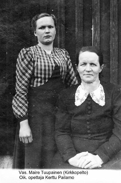 Vas. Maire Tuupainen (myöh. Kirkkopelto) ja opettaja Kerttu Pailamo