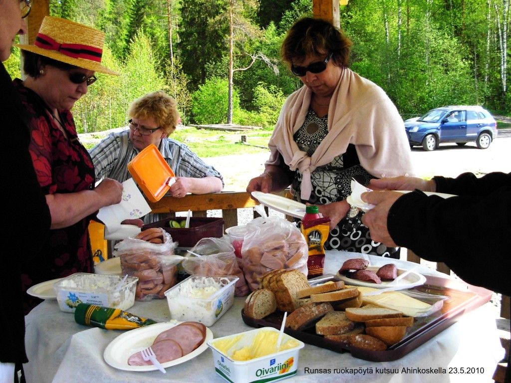 Ahinkoskella pysähdyttiin evästauolle 23.5.2010. Kuva Unto Kortelainen